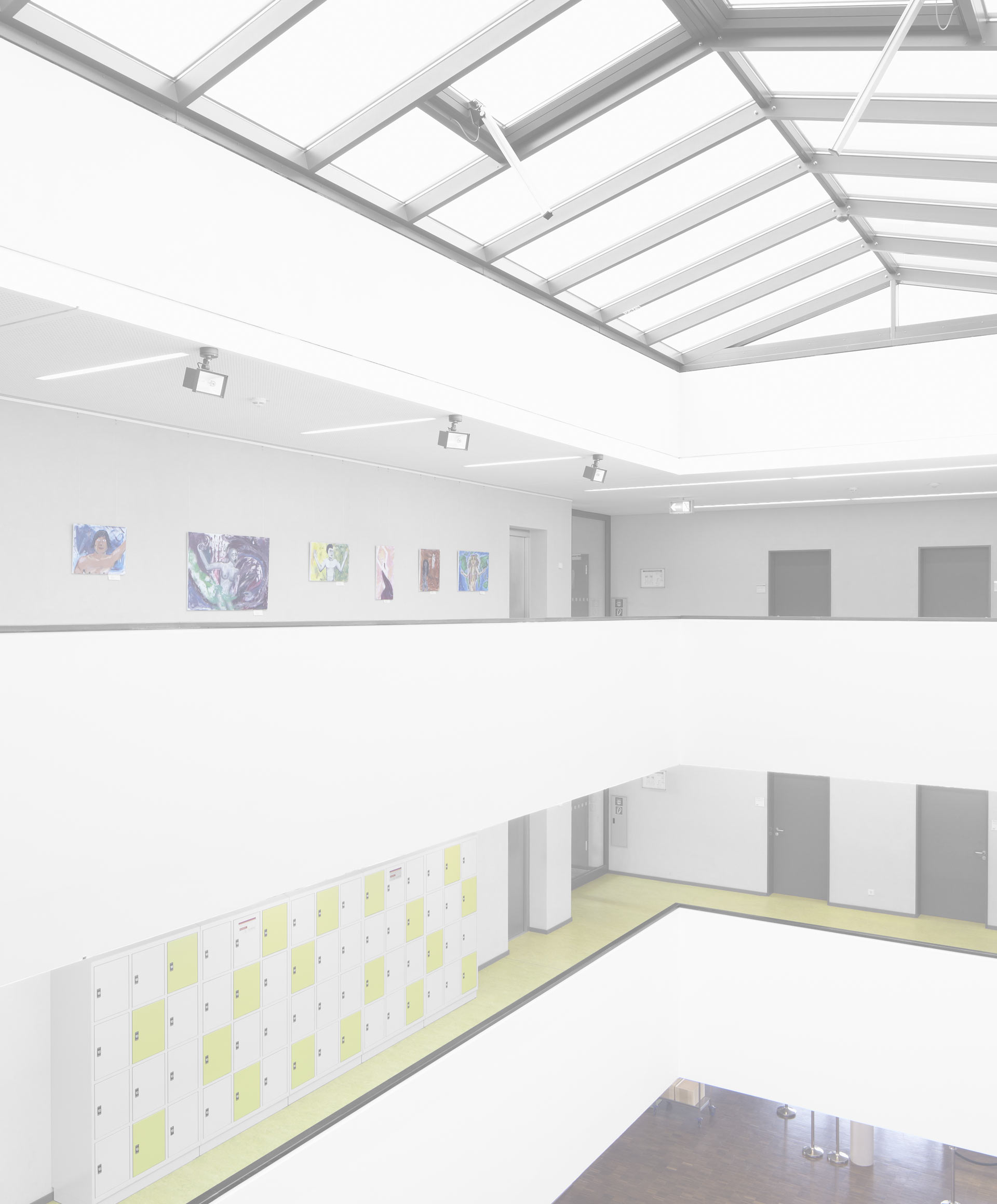 Wenn Sie die fast unbegrenzten Möglichkeiten der Farbwahl im Sinne eines Leitsystems nutzen wollen, bietet sich eine auf die Umgebung abgestimmte Farbgebung an, die den Schülern Orientierung innerhalb des Schulgebäudes geben können.
